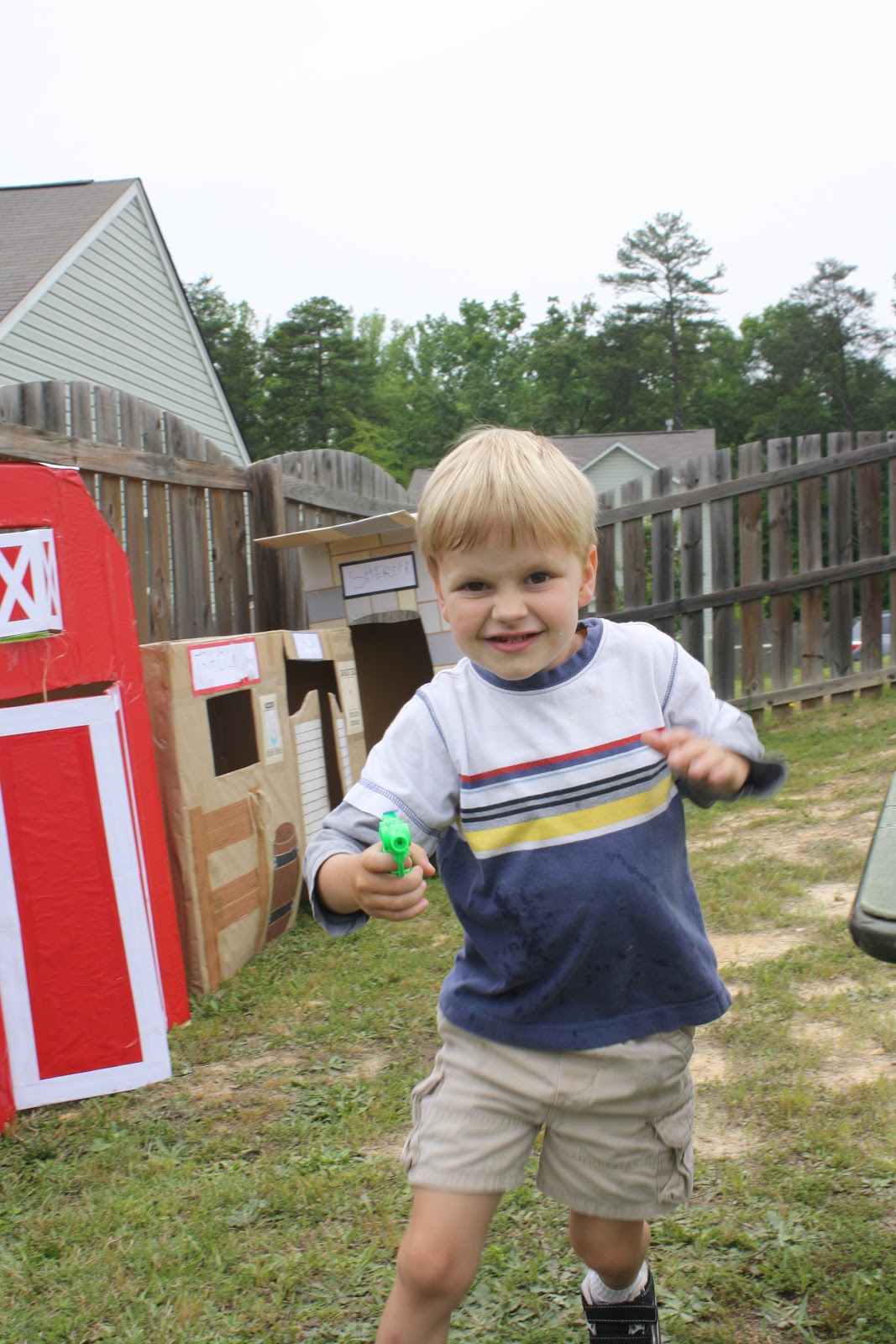 And onto the party. We decided that a cowgirl party would suffice as a 'pony party'. This had kind of morphed from her original 'pony, unicorn and rainbows'. I needed a little bit more to work with. So with a little creativity and boxes we made a western town, raided my mother's house for farm stuff, cow balloons and some bandannas we were set! She wanted a cookie cake (whatever that meant) so I just handed that job over to her. She actually did a really good job. So I'm just gonna throw on a TON of pictures from the party and maybe add in a caption here and there, so enjoy the party!